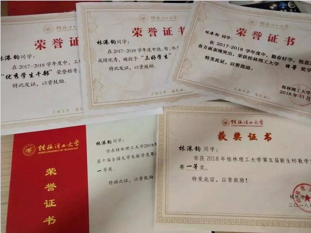 出于对数学的喜爱,他选择了与数学及其相关的自动化专业。在大学期间,他始终都刻苦学习,在各方面都取得优异的成绩。回顾大学四年时光,林港钧先后获得了三好学生优秀团干优秀学生干部、校特等奖学金、国家励志奖学金等这些荣誉称号和奖励。