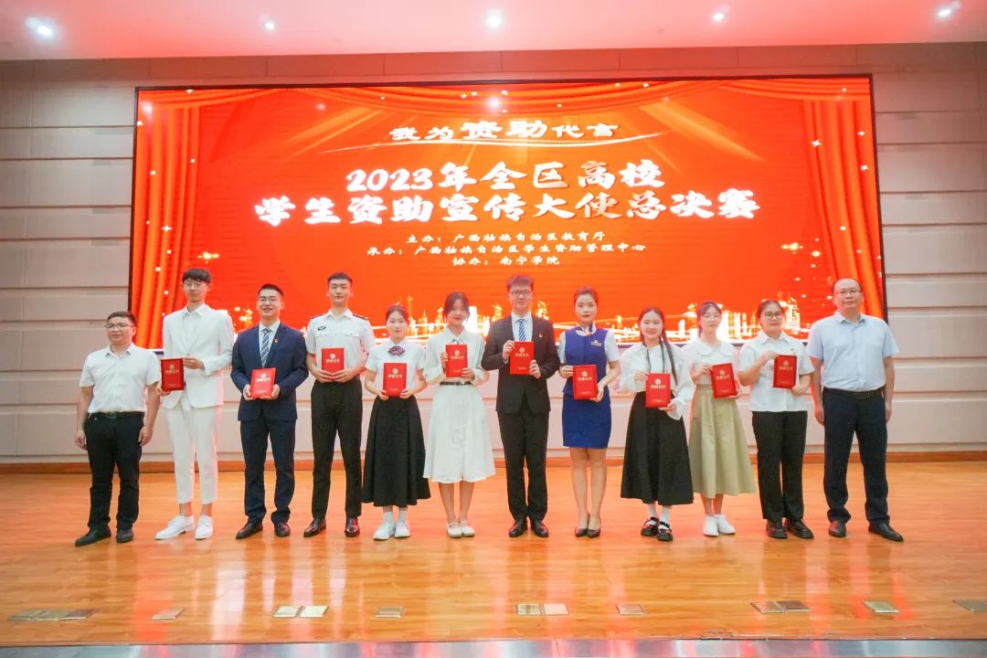 7月2日上午,由广西壮族自治区教育厅主办、广西壮族自治区学生资助管理中心承办、南宁学院协办的2023年"我为资助代言"全区高校学生资助宣传大使总决赛在南宁学院举行。我院张榕缨同学在总决赛中表现突出,获得"优秀学生资助宣传大使"荣誉称号。