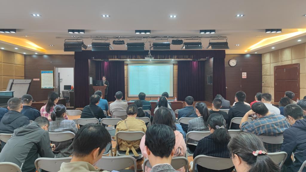 其次,李海侠副院长分别从学院教育教学审核评估工作的组织及开展情况、目前在教育教学审核评估中存在的问题、下一阶段学院的主要工作以及学校督查组对学院教育教学审核评估材料检查出的问题和整改意见向全体老师做了解析和说明。